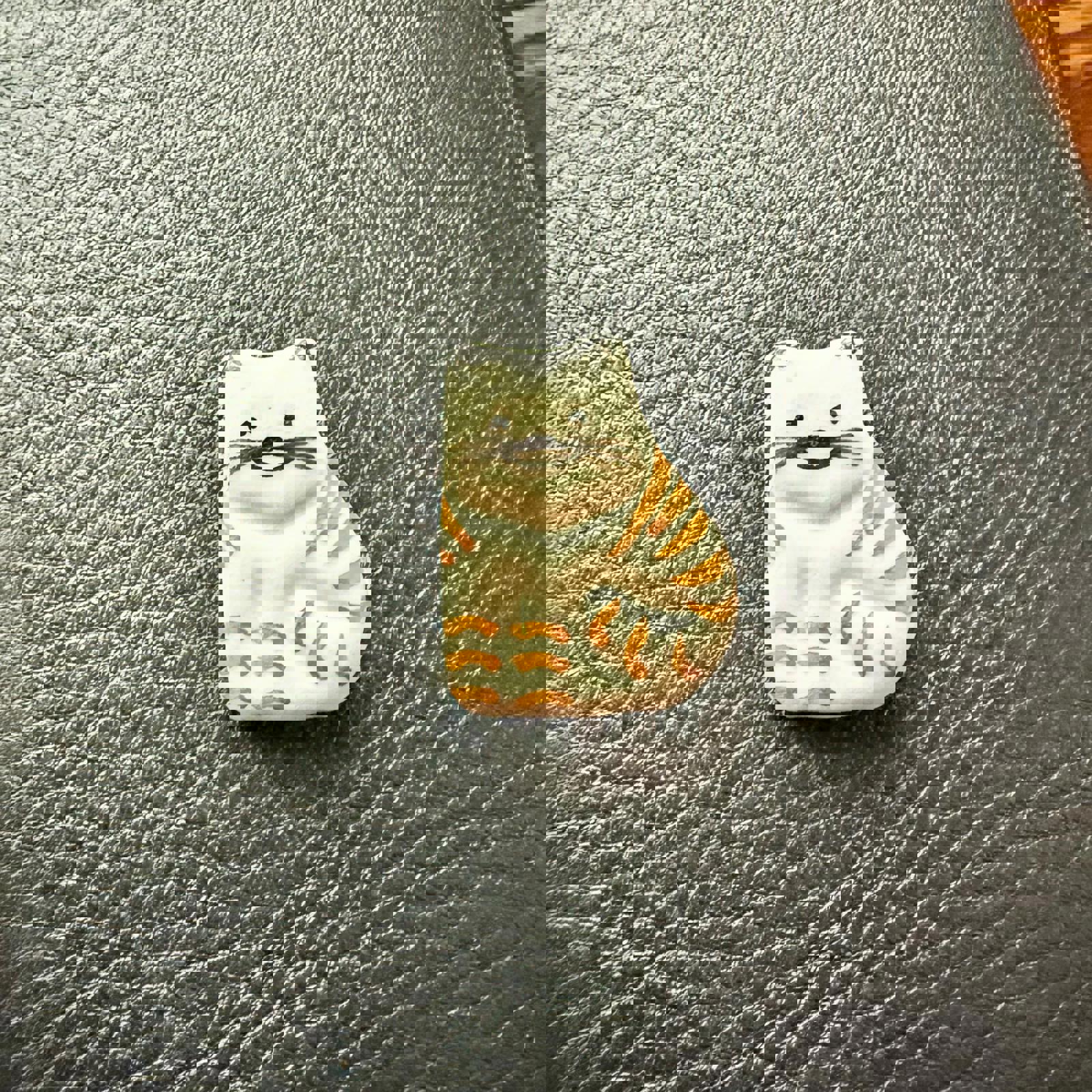 Measuring approximately 1.5" x 1", this small kitty pin features warm orange striping and a charming expression. A playful and cozy accent for sweaters, jackets, or tote bags.